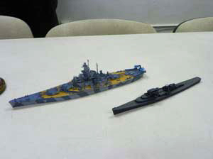 Robert Curtin brought his finished Hasegawa 1/700 USS Alabama and his Skyways USS San Diego, in the